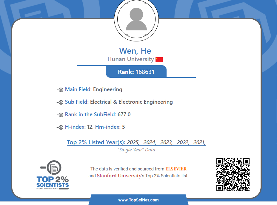 2021年-2025年均入选World top 2% scientists。