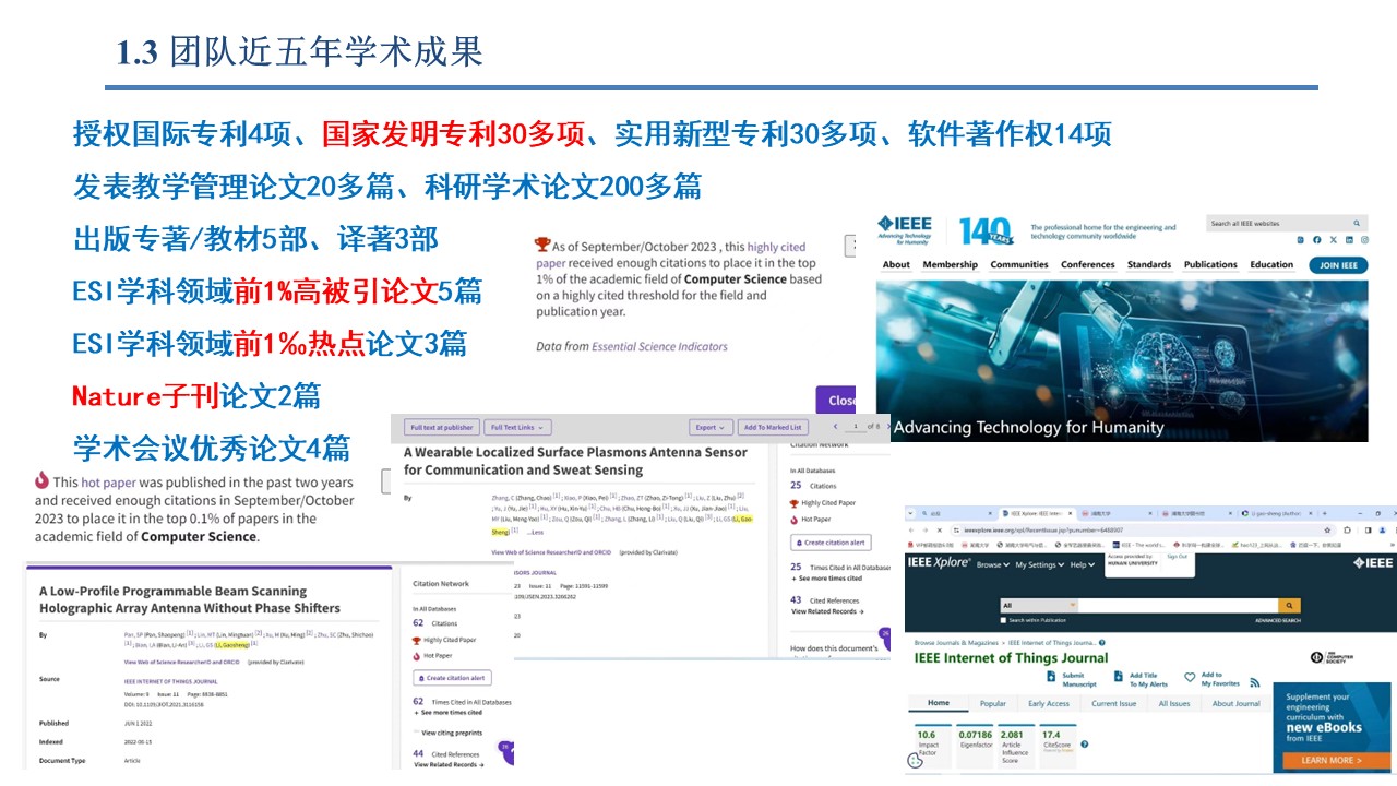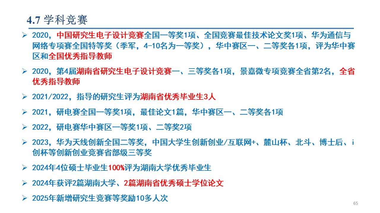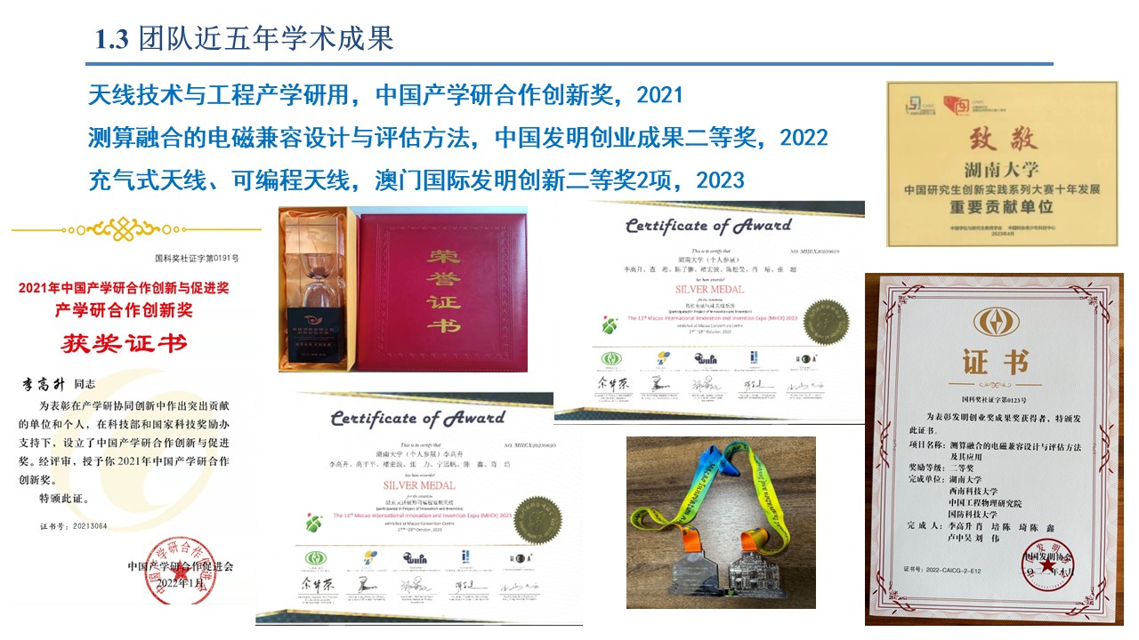 作为指导教师获得研究生电子设计竞赛全国一等奖(前1.4%)2项、二/三等奖各1项,全国研电赛最佳技术论文(前0.3%)2篇,华为通信与网络竞赛全国特等奖1项、天线创新赛全国二等奖1项、射频挑战赛全国三等奖2项,景嘉微杯电子设计竞赛全省特等奖1次,研电赛华中赛区一等奖7项、二等奖10多项,湖南省研电赛一/三等奖各1项、二等奖4项,全国学术会议优秀论文奖4项,湖南省电子学会优秀论文一等奖1项,互联网+/博士后/北斗应用/麓山杯/i创杯等创新创业大赛省部级奖励10多项,被评为全国优秀指导教师2次、湖南省优秀指导教师1次,里番动漫