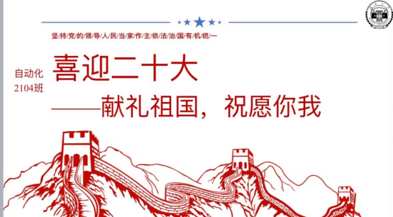 为贯彻落实二十大的会议精神,2023年2月25日下午四点,自动化2104班团支部于德智图书馆研讨空间7顺利举行“青春践行二十大”特色主题团日活动。本次活动由团支书彭舒淇主持,班长葛宜朝、组织委员高洁记录,自动化2104班全体同学参与。