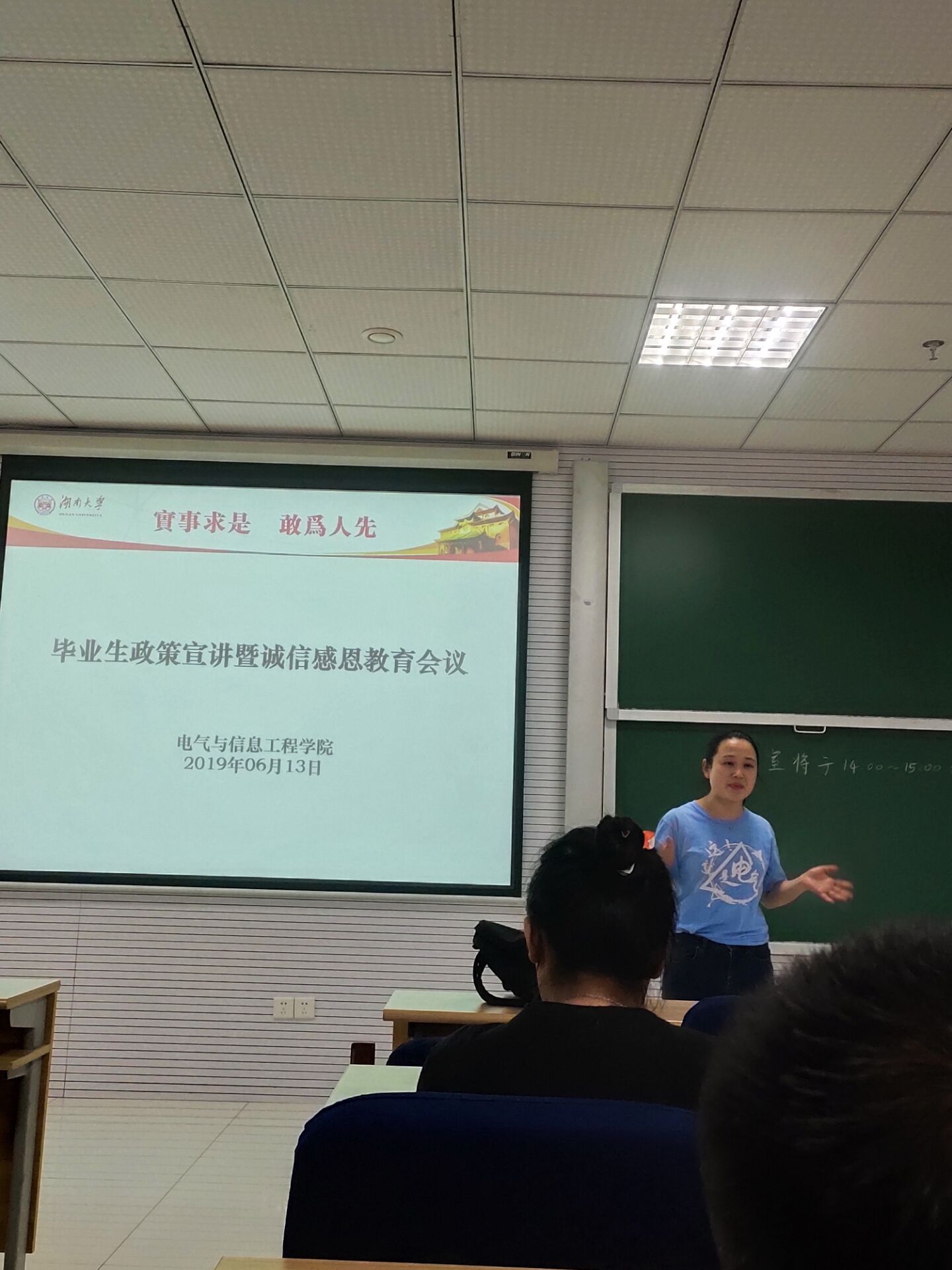 2019届毕业生诚信感恩教育活动在研楼C202举行。电气院本科2015级辅导员付亚宾老师、电气院两位资助助管、有意向申请应届毕业基层就业代偿项目和获得国家助学贷款的毕业生参与此次会议。