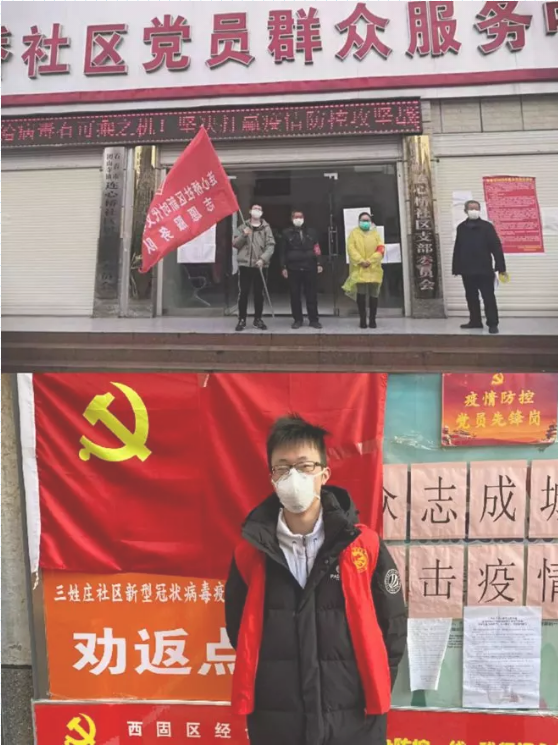 此外研二学生李晨光、研一学生谢诗昂也积极参与当地社区的疫情防控工作,进行社区出入登记、测体温、人员排查等工作。