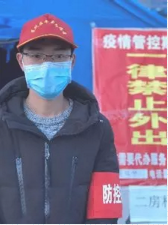 研二学生司羽飞于2月14日至17日期间,在湖北省襄阳市襄州区古驿镇二房村的交通干道上参与疫情管控执勤工作,一一劝返了想要外出的村民,防止了疫情的传播。