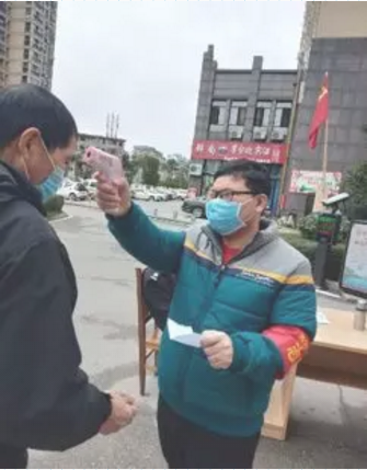 研二学生邓凌峰为确保社区人们健康出行,他于2月14日上午主动到江西省抚州市滨湖世纪城小区门口,参与了社区人口出入登记、测量体温等抗疫志愿服务工作。