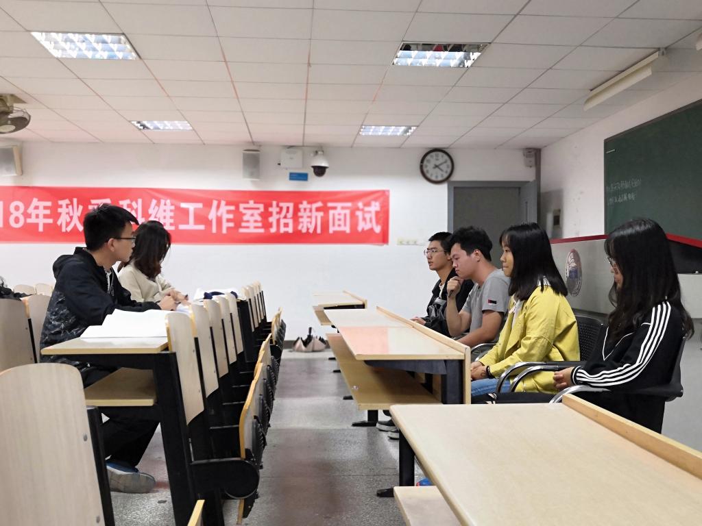 的同学们清晰的思维,缜密的逻辑。面试官们也在面试过程中随机地提问,考察同学们的应变能力。下午六点半,此次长达四个小时的招新活动便圆满结束了。