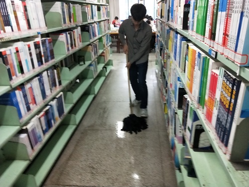 在活动尚未开始前,提前到达的同学们就已经开始热心的帮助工作人员搬运各种图书馆的装修物资。到了规定的志愿时间后,同学们纷纷聚集在一起,与图书馆的管理人员的沟通协调,分配此次志愿者活动的任务。此次志愿者活动主要是对图书馆的五楼六楼的自习室及楼道进行清洁维护,其中包括整理书架、拖地、擦窗及清理储物柜等事项。