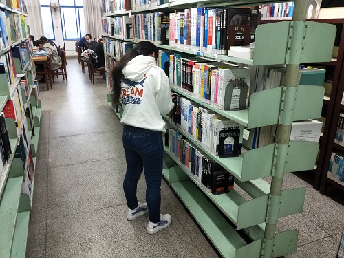 电自1705班的同学们在团支书王胜辉的组织带领下,来到学校图书馆开展了本学期第一次班级志愿活动。