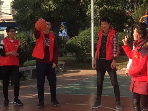 当天天气很不错,在同学们换上志愿者服装后,就和学员一起走出室内,前往健身广场。一开始,同学们并不能很好地融入学员们之中,大家都显得有些拘束。在班委们的带动下,同学们开始尝试着去寻找与学员的共同语言,纷纷用自己的特长带给学员们欢乐。有擅长折纸的同学,给学员教爱心,花篮,蝴蝶,花朵等等;有擅长绘画的同学,和学员一起绘制作品;有擅长体育项目的同学,与学员们打羽毛球,乒乓球;也有擅长唱歌的同学,打开手机,和学员们一起放声歌唱。渐渐地,学员们也会提出自己的需求,主动寻找同学们比赛跑步,主动与同学们组队打篮球赛,主动告诉同学想听音乐、看电影、玩游戏。场面逐渐变得活跃起来,同学们和学员们的相处也不再显得尴尬。就这样,同学们陪伴学员们度过了一个美好的下午,有说有笑,气氛十分融洽。