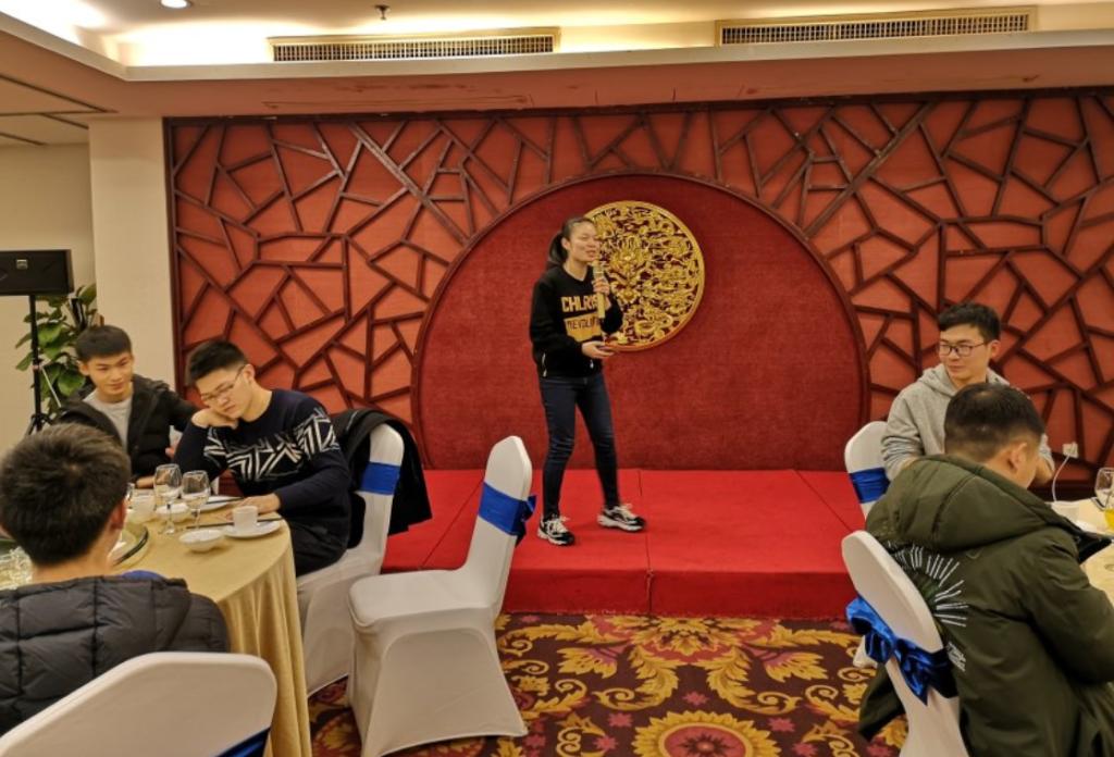 第三部分是畅所欲言和聚餐环节,由班长于长泽主持。在一片欢声笑语中,大家举杯共贺,各位同学依次发言,送出自己对班级未来的美好祝愿,表达了自己对同学们的感激、对班级工作的热情以及对老师的感谢之情。