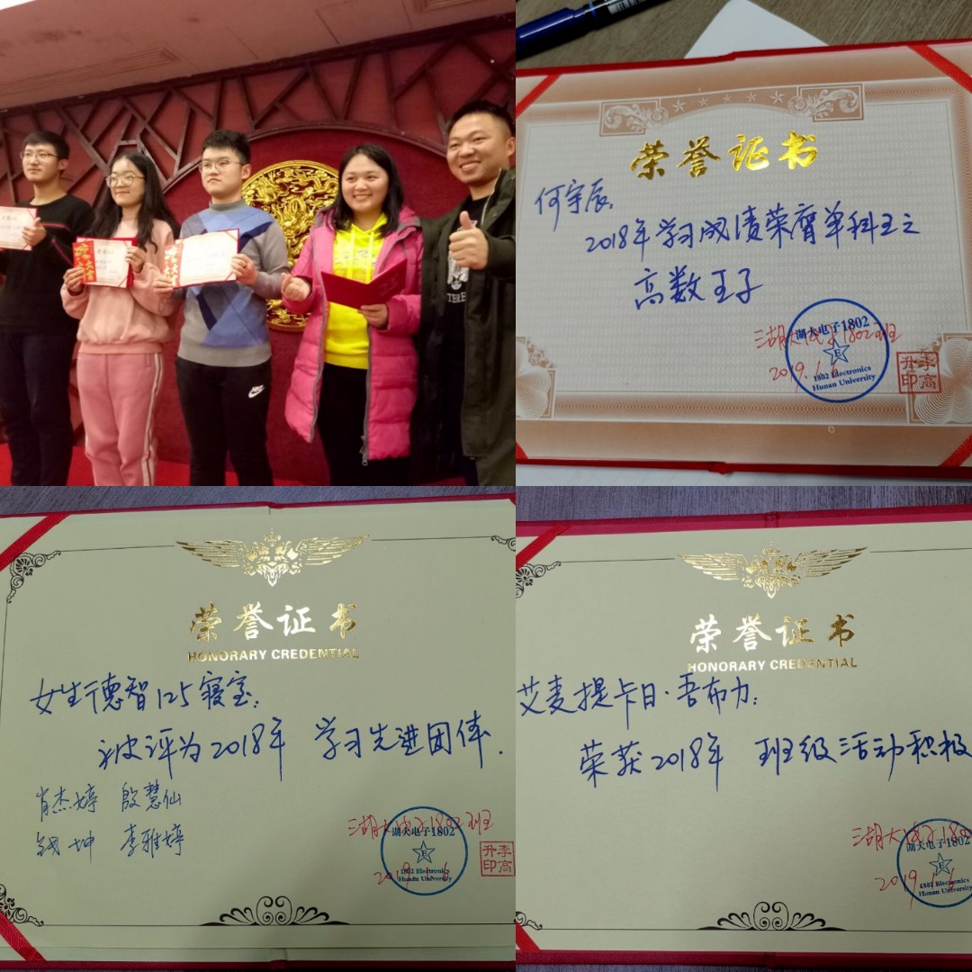 第二部分是2018年度奖励颁发环节,由团支书肖杰婷主持。根据前期评选结果,分别颁发了单科王(工图女王、高数王子、计算机王子)、学习标兵、学习进步之星、内务标兵寝室、学习先进团体、活动积极分子、班级贡献奖等一系列奖项。