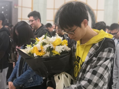 参观之后,全体同学列队整齐,在纪念塔下进行了默哀仪式。一时间全场肃静,同学们心中怀着对烈士们最由衷的敬意进行了三分钟的默哀。默哀仪式结束之后,同学们将怀抱中的鲜花轻轻献上。之后,在团支书的带领下,全体同学在烈士塔下进行了庄严的宣誓。随后便是电自1702和电自1704班级代表在团旗下的讲话。两位同学分别讲述了自己对于党和革命等的理解,也表达出了同学们的心声。