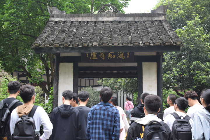 随后,参观了蔡和森故居,一座普普通通的五开间平房。屋旁有片碧绿的菜畦,毛泽东和蔡和森曾在这里耕作。进入室内,房间不太宽敞,家具有些简陋。掉了漆的桌子,木板拼成的床,磨损的农具,向大家展现了革命年代物质条件的艰苦和革命先辈勤俭朴素的生活作风。同学们不禁感叹,当年正是在这样一间普通的屋子里,聚集了一群意气风发的有志青年。他们怀揣救亡图存的豪情壮志,成立了新民学会,谱写了光辉灿烂的革命篇章。