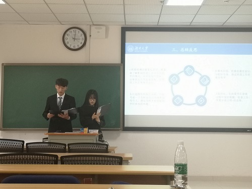 在这之后,他们就班级目前发现的一些问题如班委分配工作制度不完善、寝室卫生出现松懈、团日活动并未受到同学们的积极响应等与大家进行了分享并提出了日后相应的解决方法。但仅仅这样是不够的,随后他们进行了深刻的总结反思,努力让班委的工作能够更加的得到落实,让同学们能够由衷地认可班委会、积极主动地去参加班级的各项活动。最后他们回到原点,以六个建设作为切入点,为班级的未来制定了切实可行、行之有效的规划。