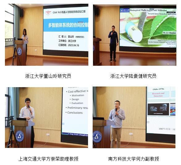 论坛会上,来自华中科技大学、浙江大学、上海交通大学、北京航空航天大学、北京理工大学、华南理工大学、合肥工业大学等高校12位优秀科技工作者分别做主题报告,围绕机器人与智能系统的信息感知、定位导航、驱动控制、决策优化等关键技术进行研讨。