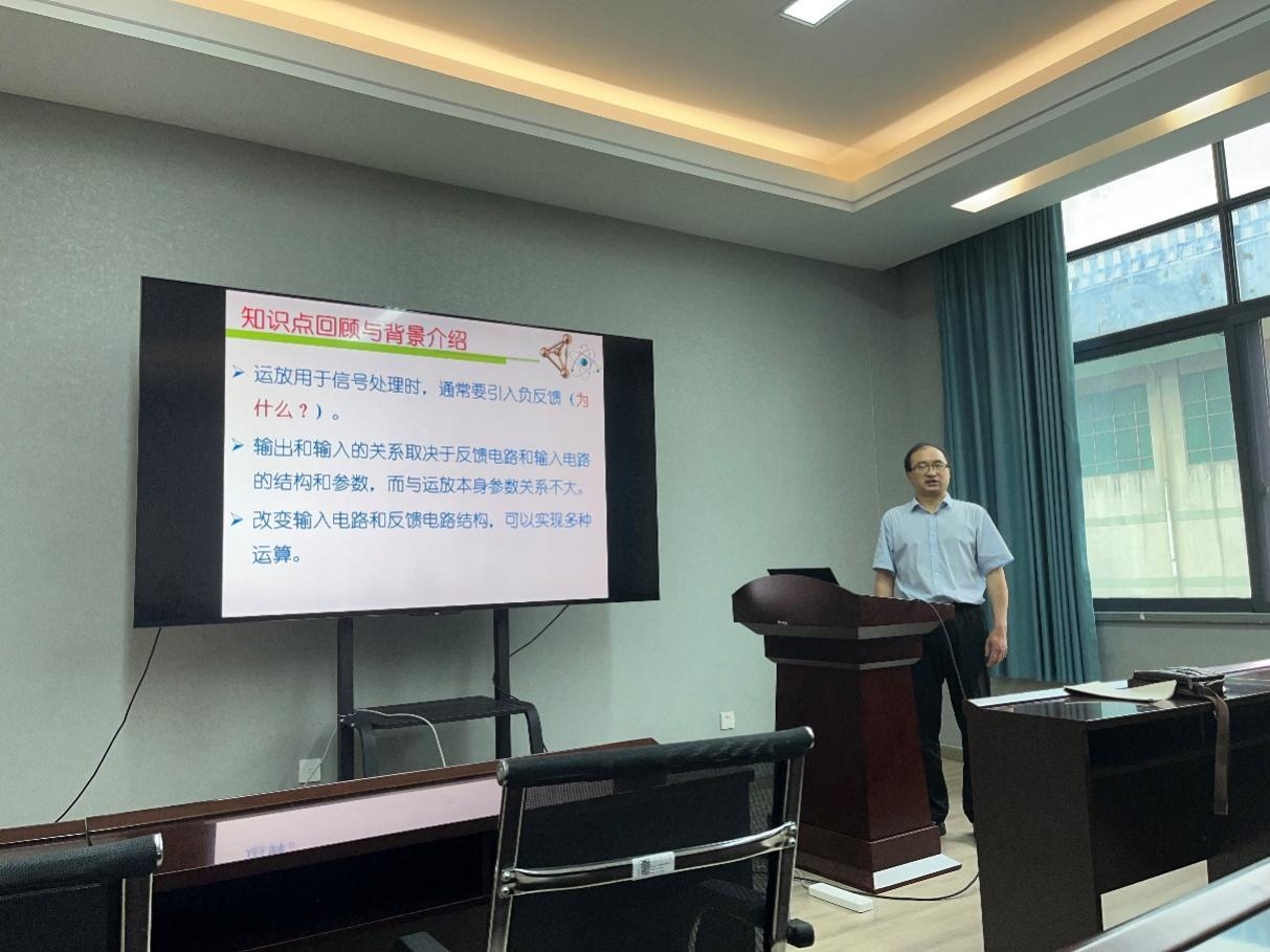 报名参加湖南省信息化教学竞赛的高兵老师以《电磁场与波信息化教学创新》为题,介绍了《电磁场与波》课程信息化建设的历程和成果,并进行了微课教学试讲;报名参加湖南省青年教师电工学课堂教学竞赛(暨第五届全国高等学校青年教师电工学课堂教学竞赛湖南省选拔赛)的张子娇、翟东媛、邓林峰三位老师,每人分别根据自己的选题内容进行了5分钟说课和20分钟的现场试讲。