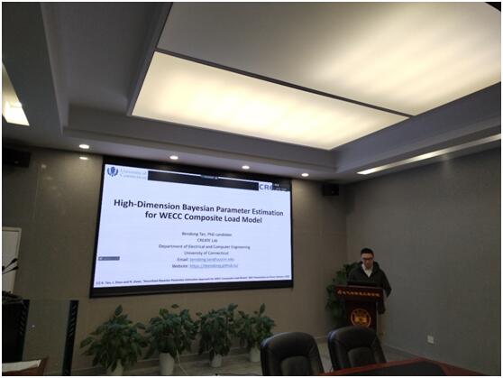 美国康涅狄格大学谭本东博士作了题为“High-Dimension Bayesian Parameter Estimation for WECC Composite Load Model”的报告。