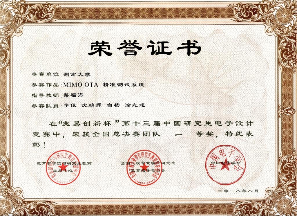 2018年中国研究生电子设计竞赛全国一等奖3项;