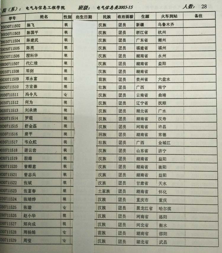 本科生校友名单 (1921—1925 湖南公立 工业专门学校)