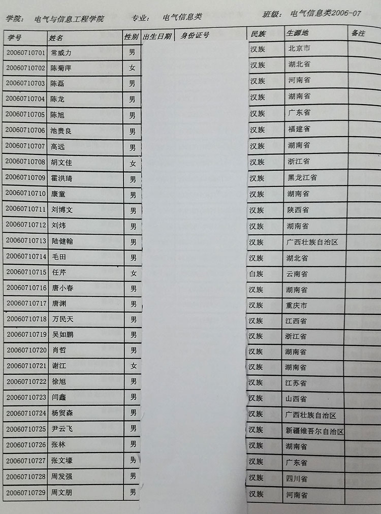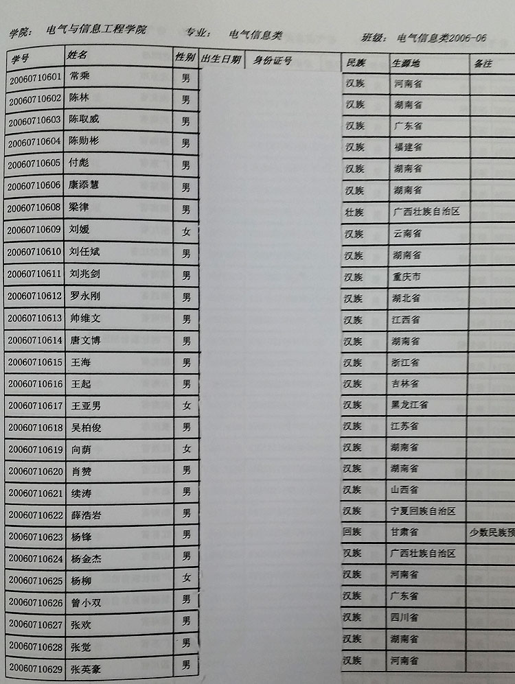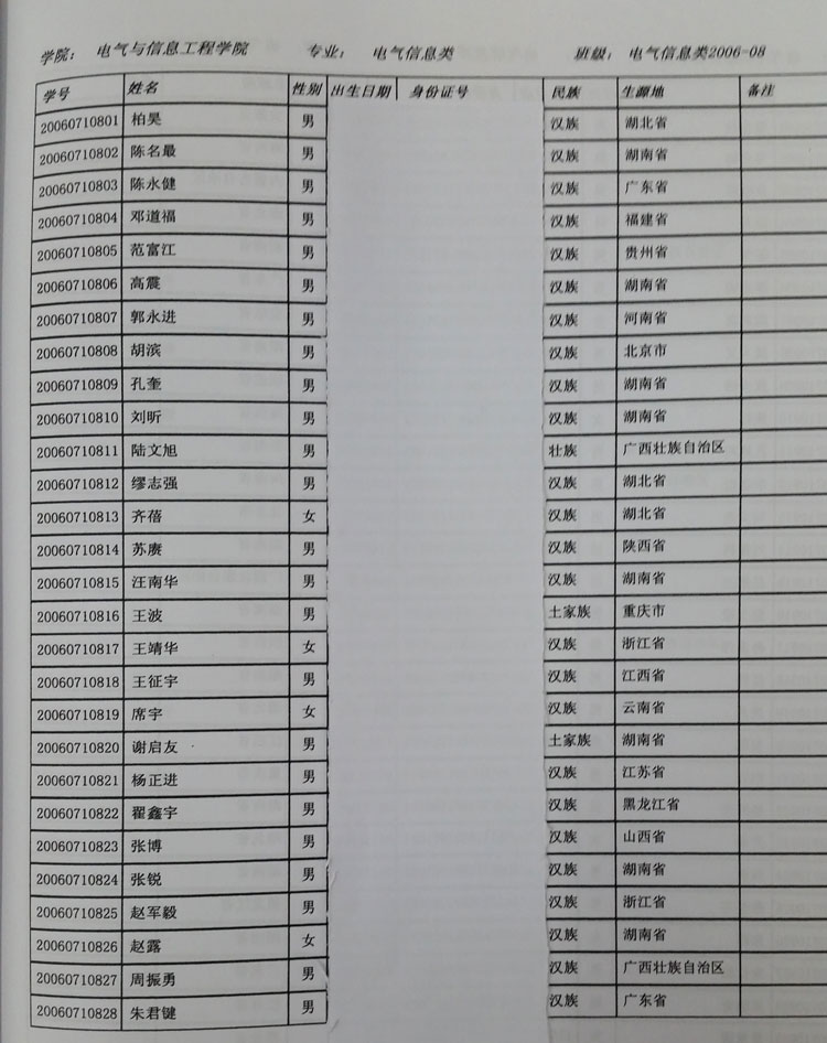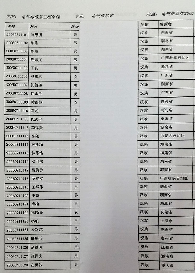 本科生校友名单 (1921—1925 湖南公立 工业专门学校)