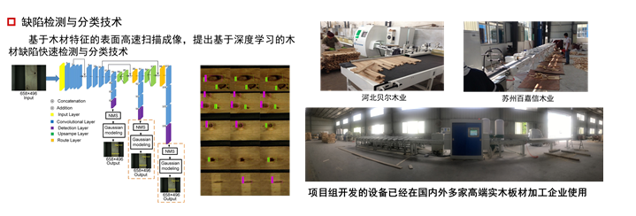 以机器视觉技术为基础,应用木材图像数字化处理和木材图像特征提取,对木材进行自动化筛选的技术,构建针对木材的机器视觉图像快速处理技术,提出基于图像处理和模式识别的木材瑕疵快速定位技术,计算缺陷木材位置信息和木材的缺陷面积,将缺陷木材的缺陷面积与不同缺陷等级的缺陷面积阈值做对比,实现缺陷木材的等级分类。
