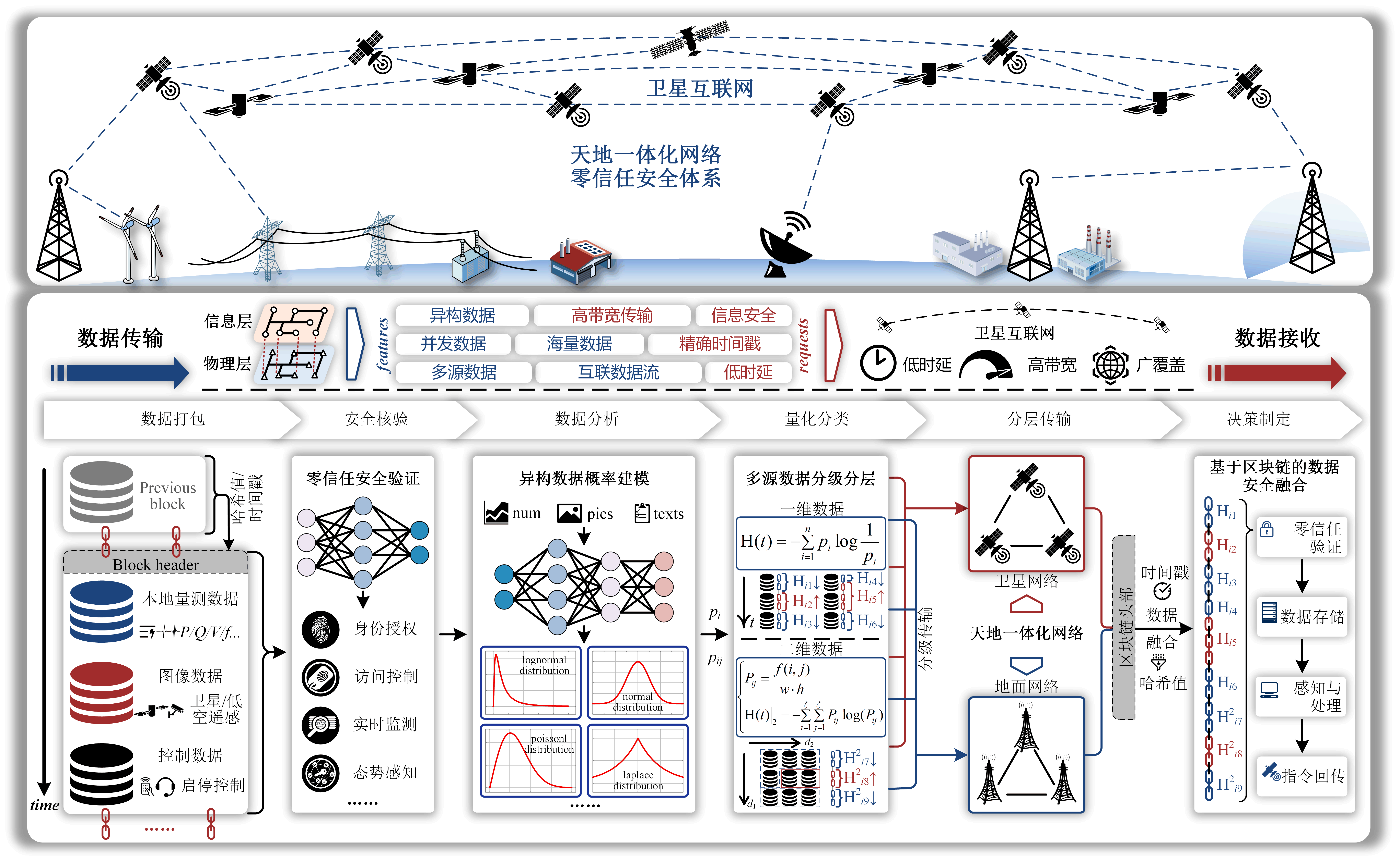 针对新型电力系统、卫星互联网、地面4G/5G网络等多元异构网络融合形成信息物理系统的开放多元特征,针对其网络信息安全风险高、攻击面多、暴露面大等挑战,开展弹性融合区块链的零信任安全架构、多元异构网络软件定义边界、网络单元动态身份可信认证、风险单元微隔离控制等研究,保障天地一体化网络下新型电力系统信息安全。