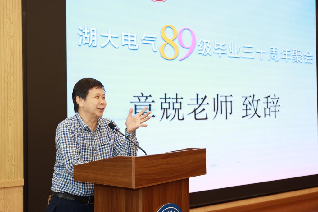 副校长章兢教授,原电气学院党委书记彭楚武教授,电气学院郑善贤教授,电气学院八九级辅导员唐文忠老师们参加会议。