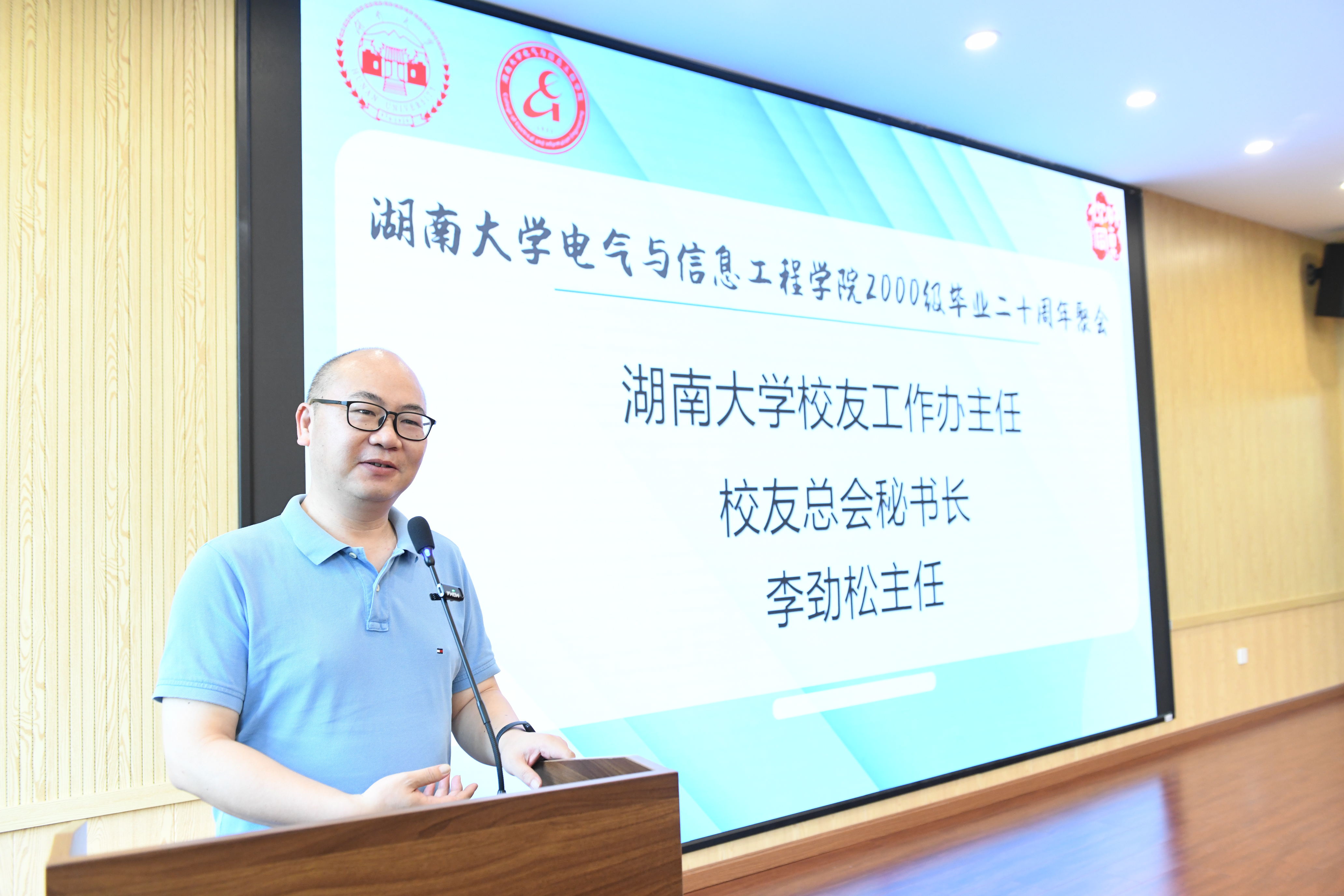 校友总会秘书长李劲松老师代表学校热烈欢迎各位校友重回母校,也向校友发出 “校友回湘”、共建湖大美好家园的邀请。