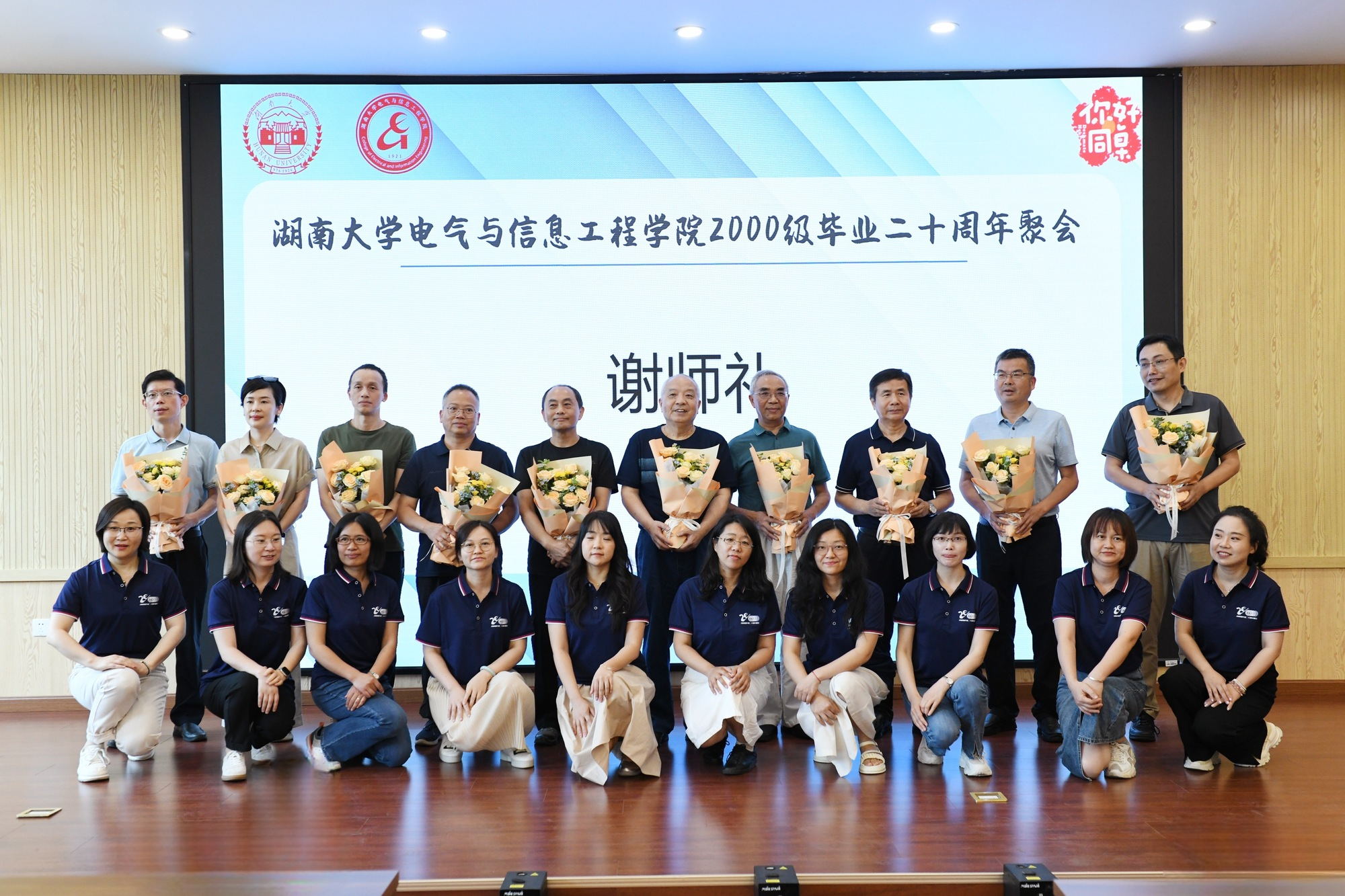 资产经营有限公司总经理张浩老师、2000级辅导员老师/现离退休处处长李勇军老师、学院院长帅智康教授、副院长李勇教授、原书记彭楚武教授、仪表系滕召胜教授、原副院长黎福海教授、原电气工程系主任李欣然教授、电气系张志文教授、电子系毛旭光老师、实验中心周冰航老师、仪表系温和教授、机器人视觉感知与控制技术国家工程中心副主任张辉教授、电气2000级辅导员冯蓓娜老师出席活动。